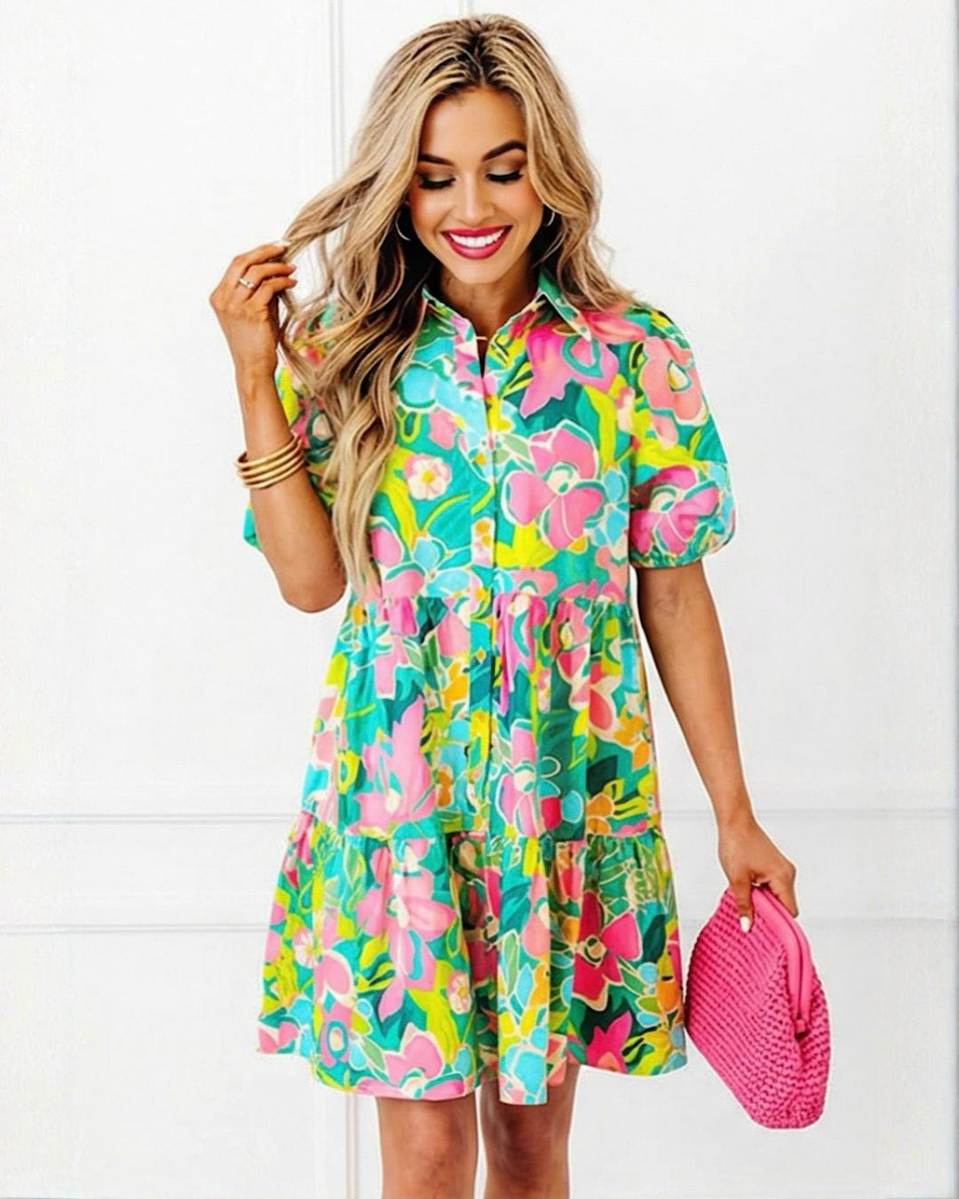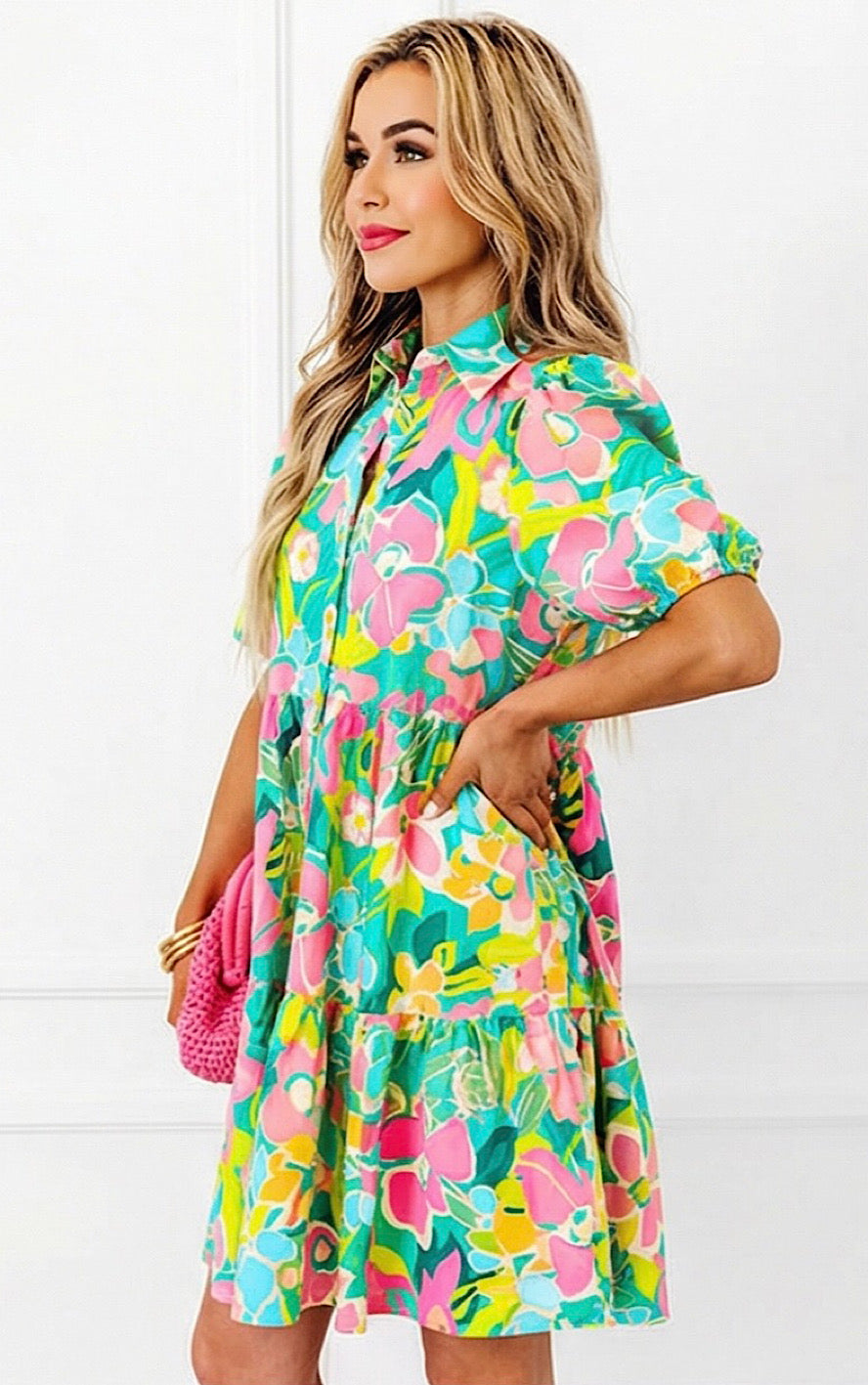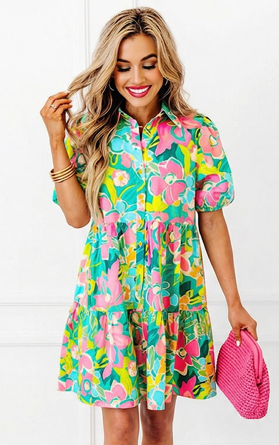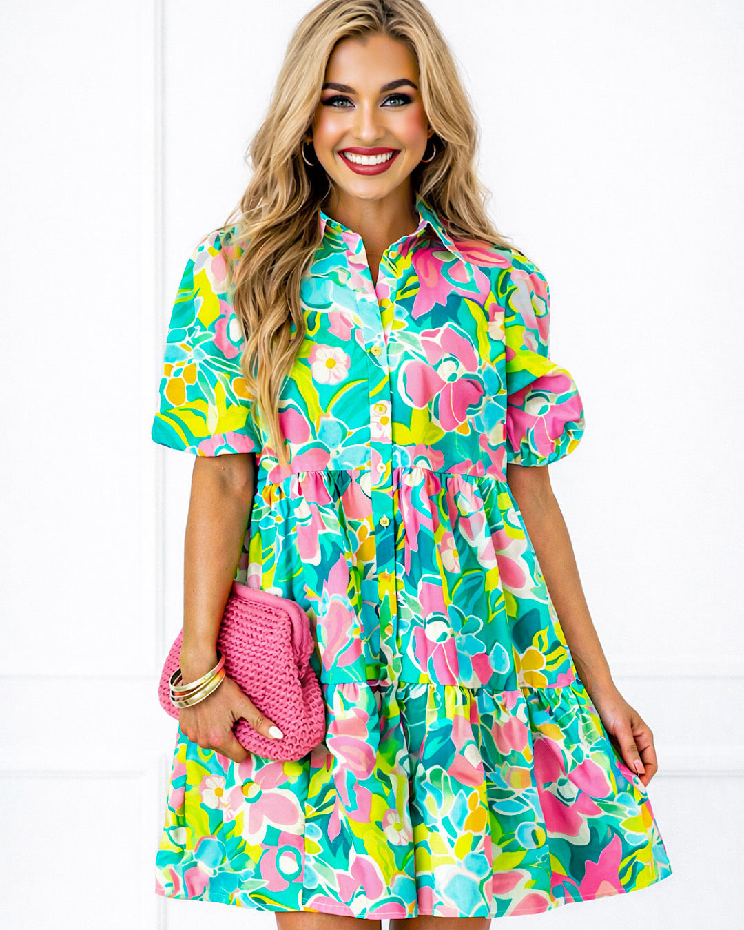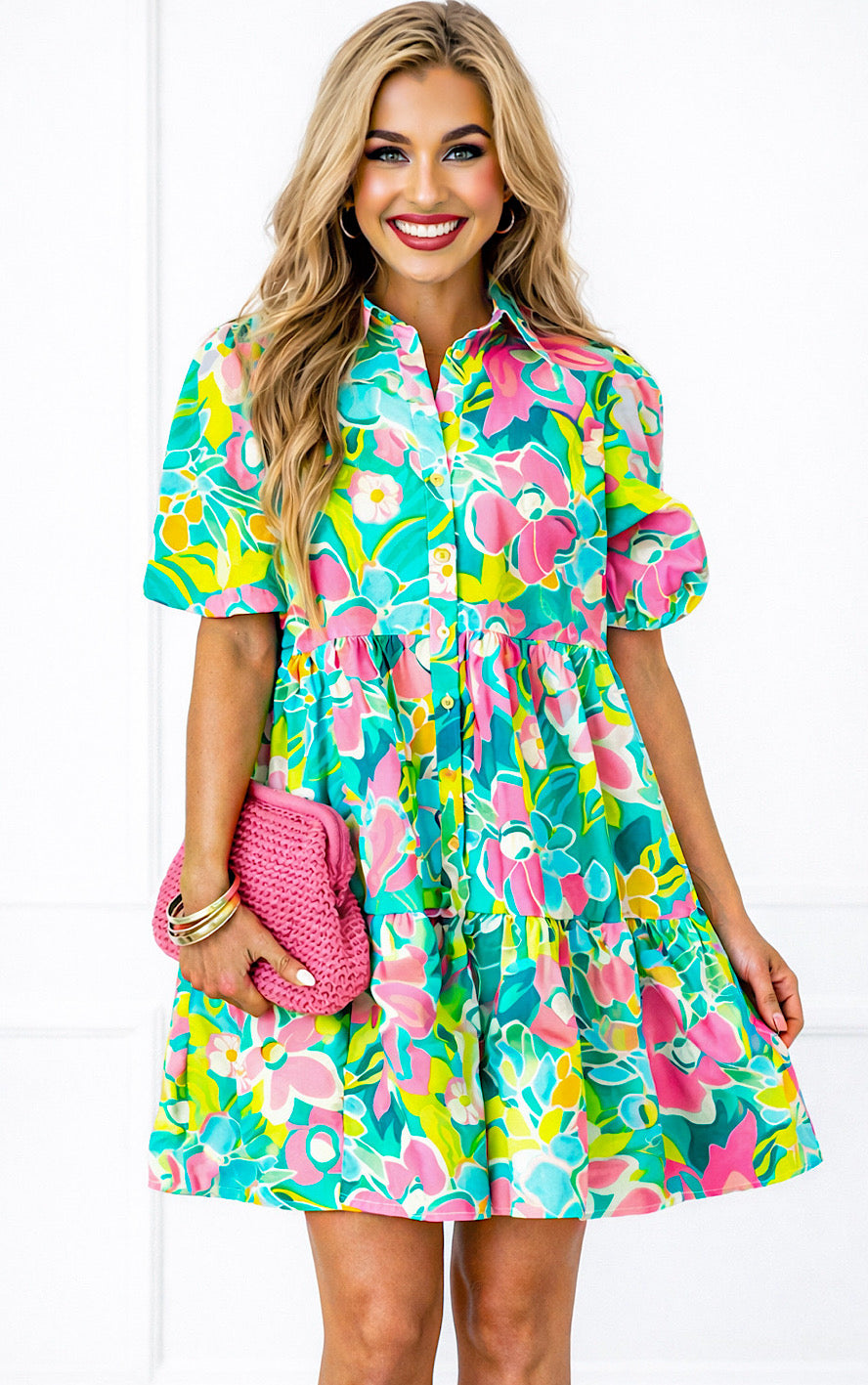 Breezy, beautiful, and full of charm! The Wildflower Whimsy Dress features a flattering button-front design, a tiered skirt for the perfect flow, and yes, pockets! The gorgeous mix of spring and summer colors makes it a must-have for Easter, weddings, showers, and all the things!