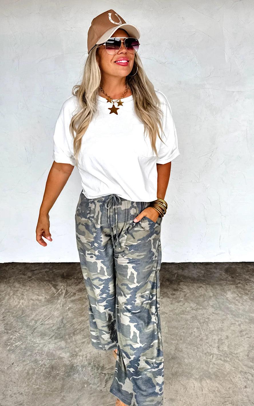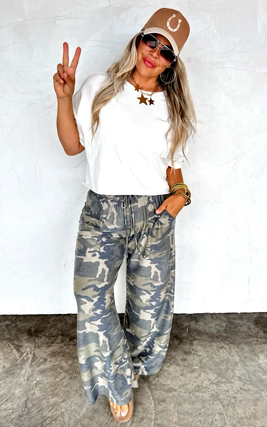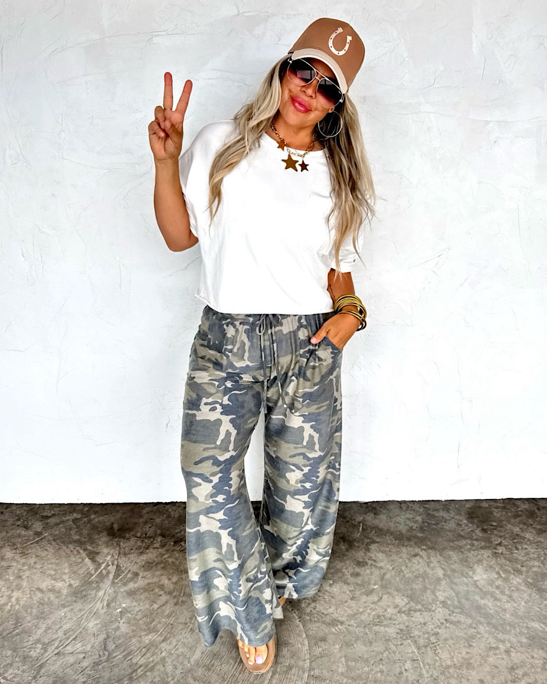 The relaxed, flowy leg makes them perfect for everyday wear—whether you’re running errands, heading to the ball field, or just living your best laid-back life. Style these camouflage drawstring pants with a basic tee, tank, or lightweight sweater and you’ve got an effortless outfit that works year-round!