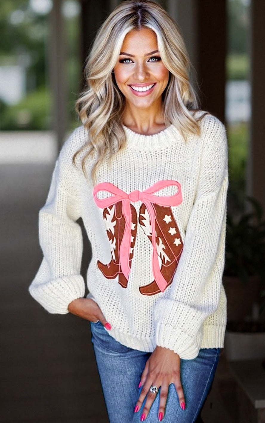 This sweater is just chef’s kiss perfection! The Cowgirl Cutie sweater is crafted from a silky-soft, beautifully weighted knit that feels absolutely dreamy against your skin — never itchy, just cozy and luxe. 🤍