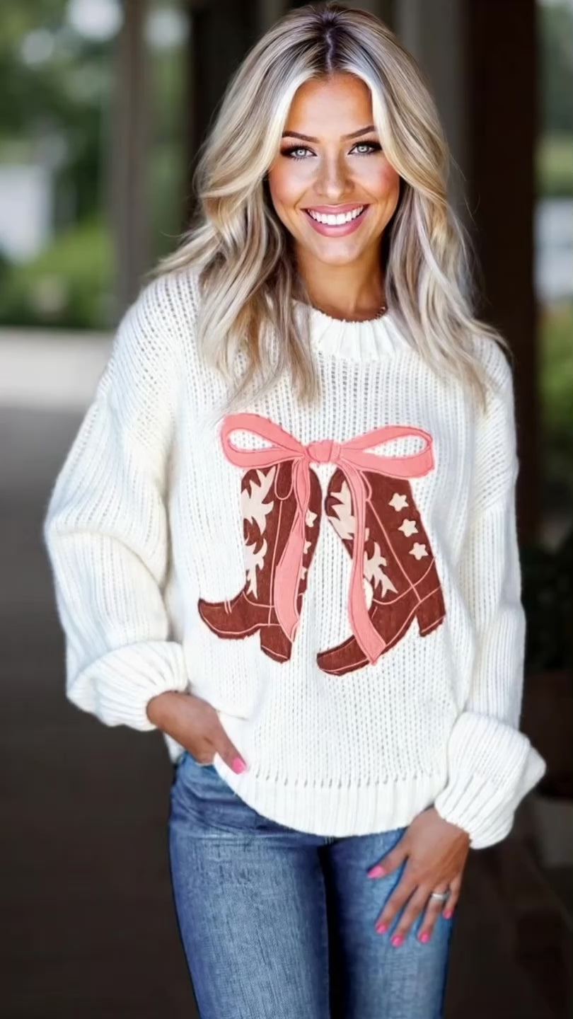Cowgirl Cutie Boots And Bows Sweater