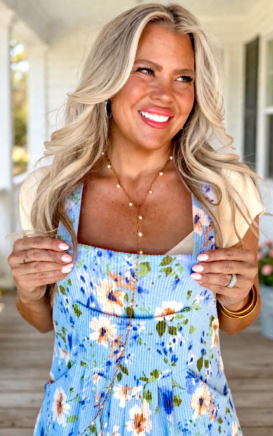 That light blue floral print is just the prettiest for spring and summer—throw it on with a fitted tee or tank and you’re good to go! Perfect for brunch, errands, vacations, or just feelin’ cute and comfy all day long! 💕