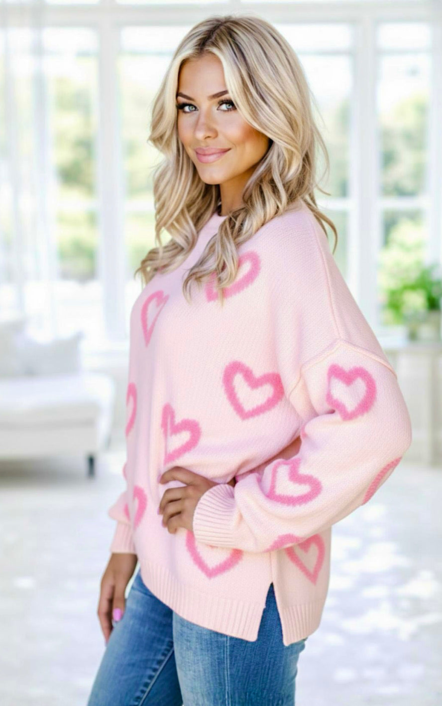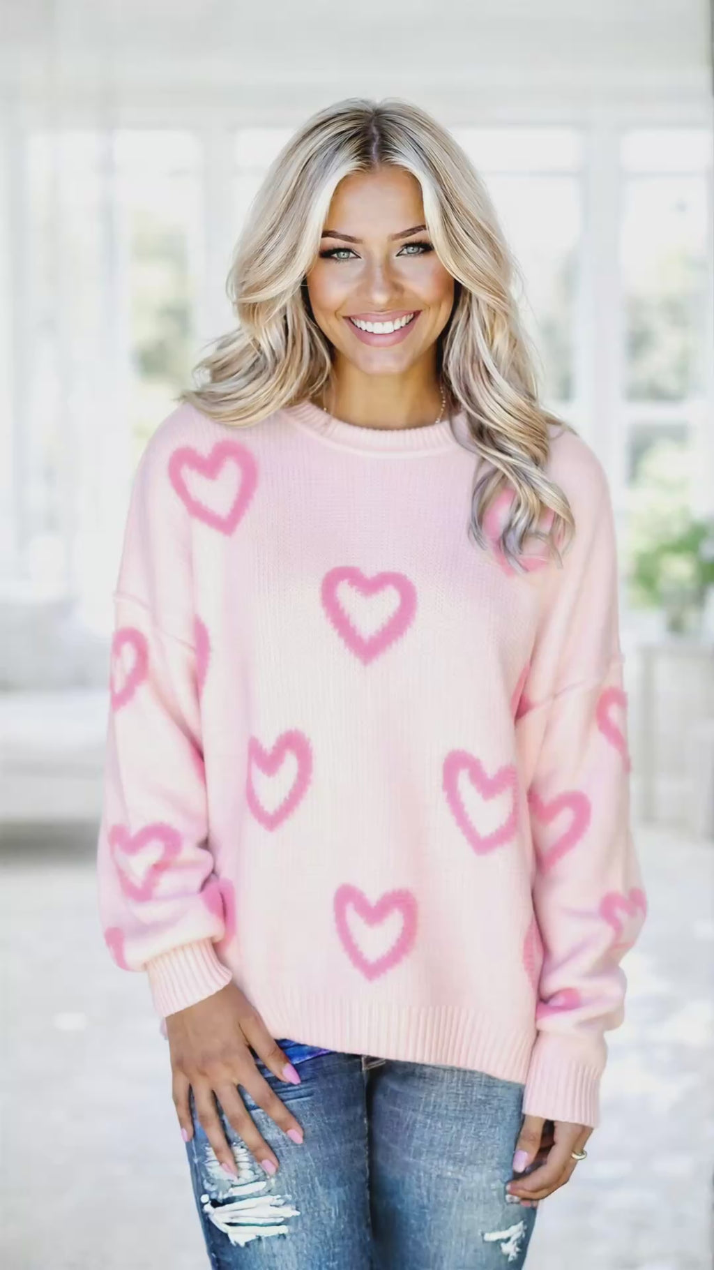 Wrap yourself in sweet romance with the Love Notes Sweater! Featuring a light pink background and textured bright pink hearts, this super soft and cozy knit is a Valentine’s dream! Perfect for date nights, brunch, or any day you want to spread some heart-eyed vibes!