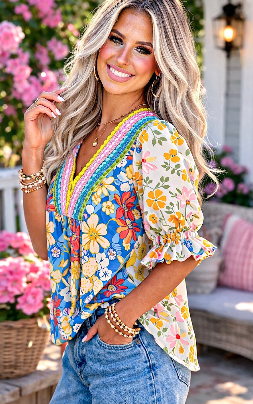 Okay but tell me this isn’t the prettiest little spring top you’ve ever seen 😍 The Laurel Lane Floral Top features a soft white background with the sweetest mix of blue, yellow, pink and coral florals that feel like pure sunshine!