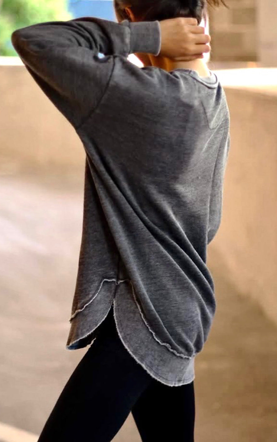 This luxe fleece is absolutely STUNNING with its soft vintage black wash and premium quality feel! 💛 Designed with a relaxed, oversized fit, it features a flattering U-shaped hemline and lightly distressed edges that give it a perfectly lived-in look. It’s thick, cozy, and the longer length makes it just right for leggings, jeans, boots & sneakers!