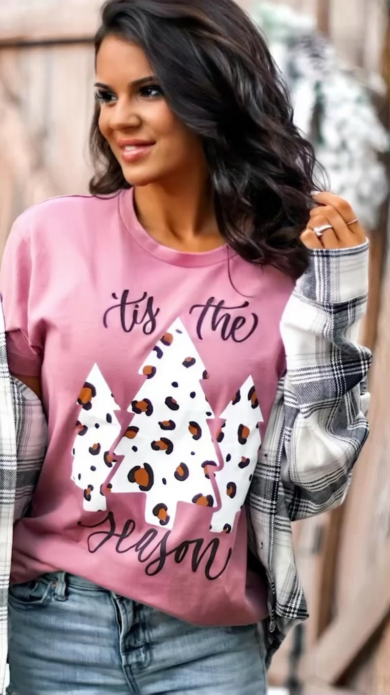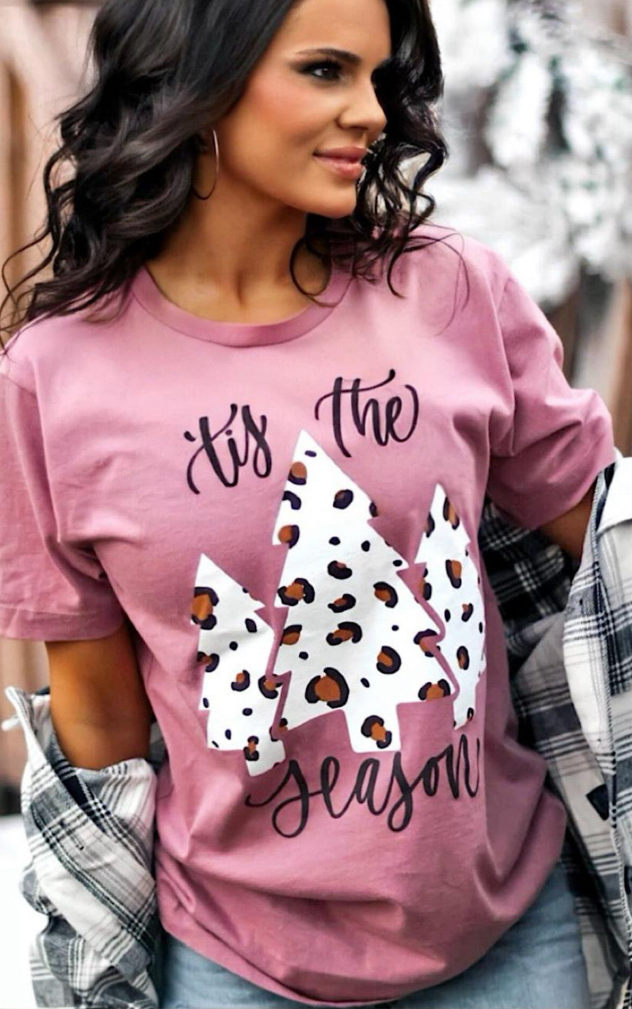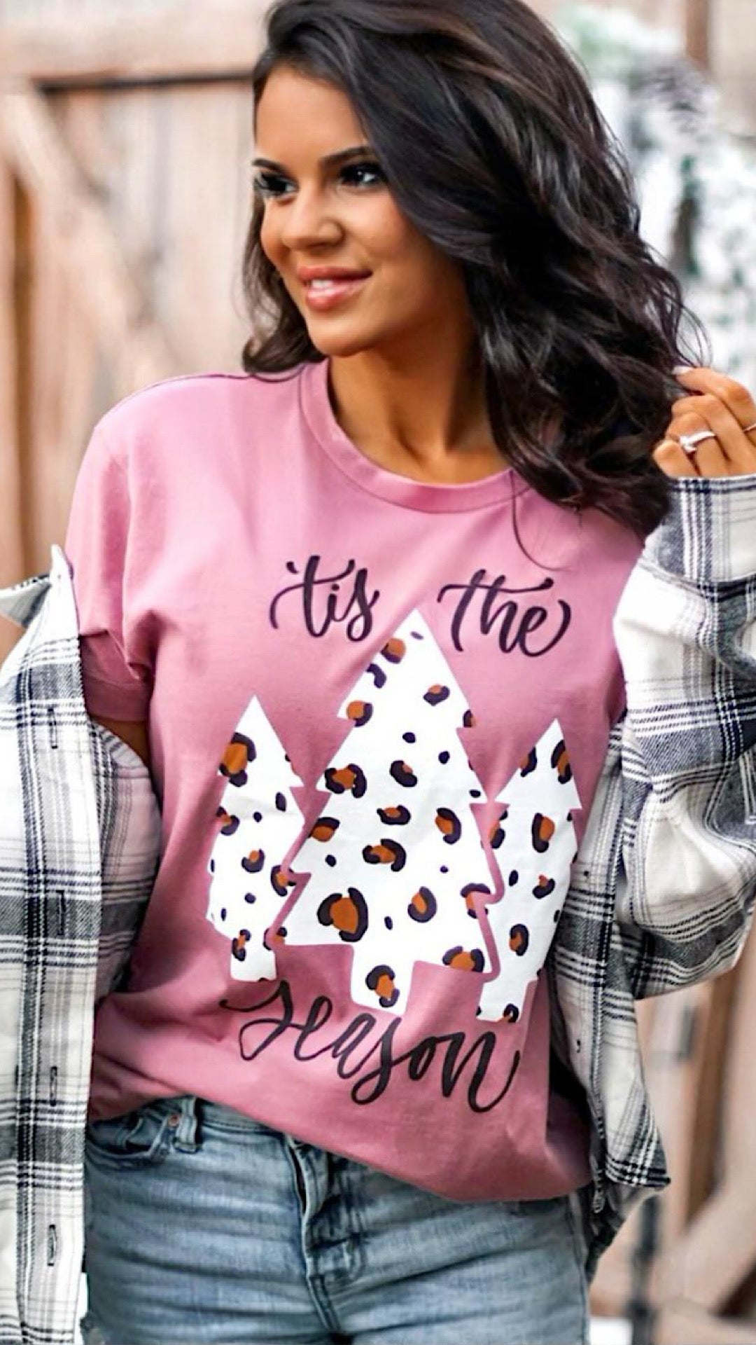This pretty mauve pink holiday tee is just the cutest thing, y’all! Those white Christmas trees with the leopard print? TOO fun. It’s soft, comfy, and one of those easy throw-on-and-go tops that works with jeans, leggings, flannels — all the things. The colors really pop in person, giving you that festive look without being over the top. Perfect for cookie baking, holiday errands, school parties, or just wanting to feel a little Christmas magic in your day!