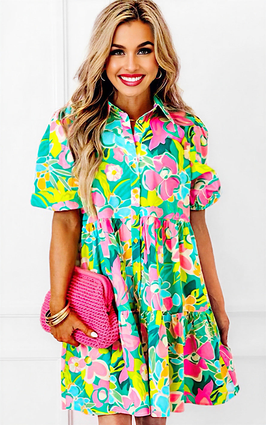 Breezy, beautiful, and full of charm! The Wildflower Whimsy Dress features a flattering button-front design, a tiered skirt for the perfect flow, and yes, pockets! The gorgeous mix of spring and summer colors makes it a must-have for Easter, weddings, showers, and all the things!